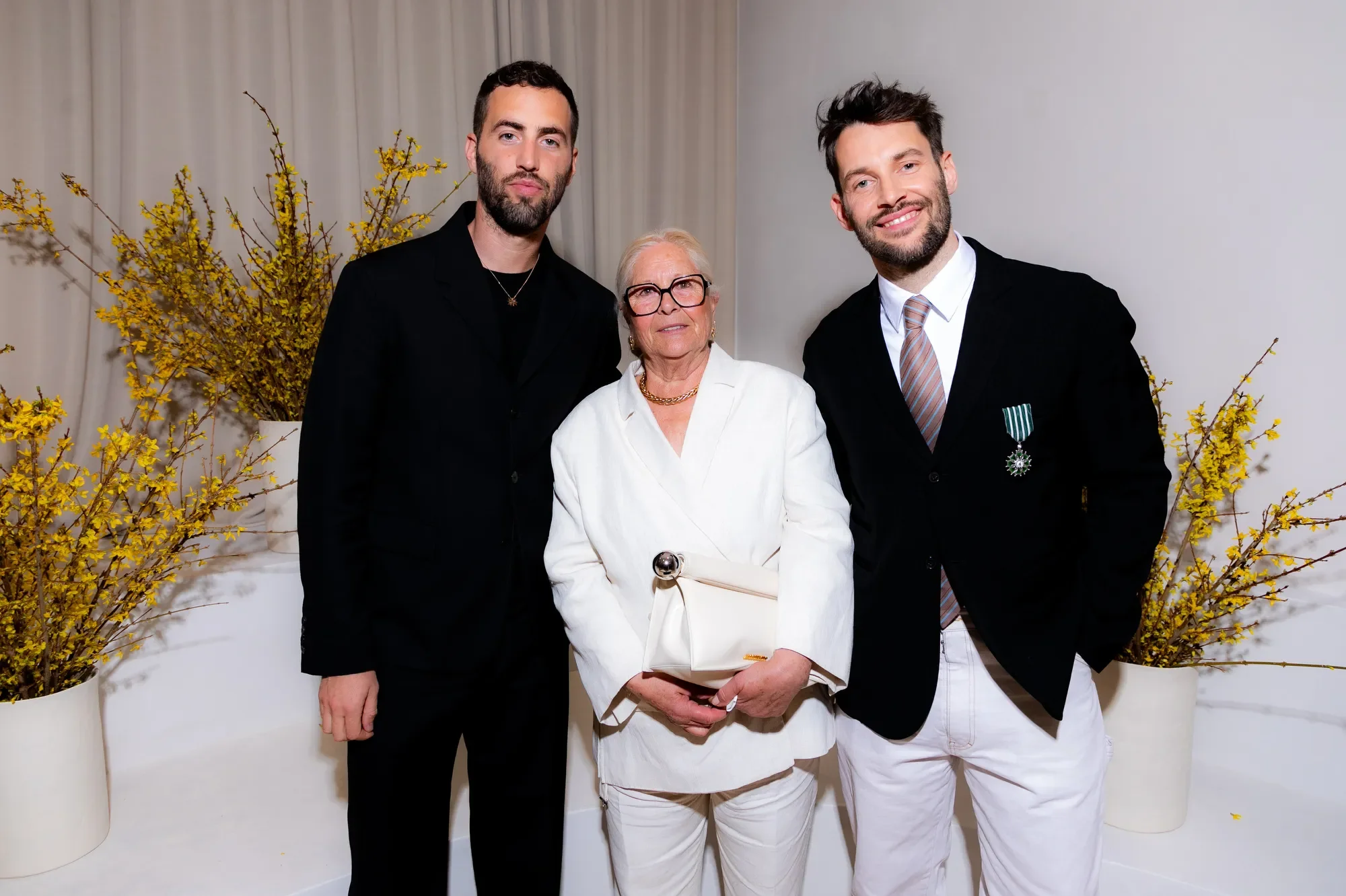 Simon Porte Jacquemus with his grandmother Liline and his husband Marco Maestri. Photo Credit/WWD